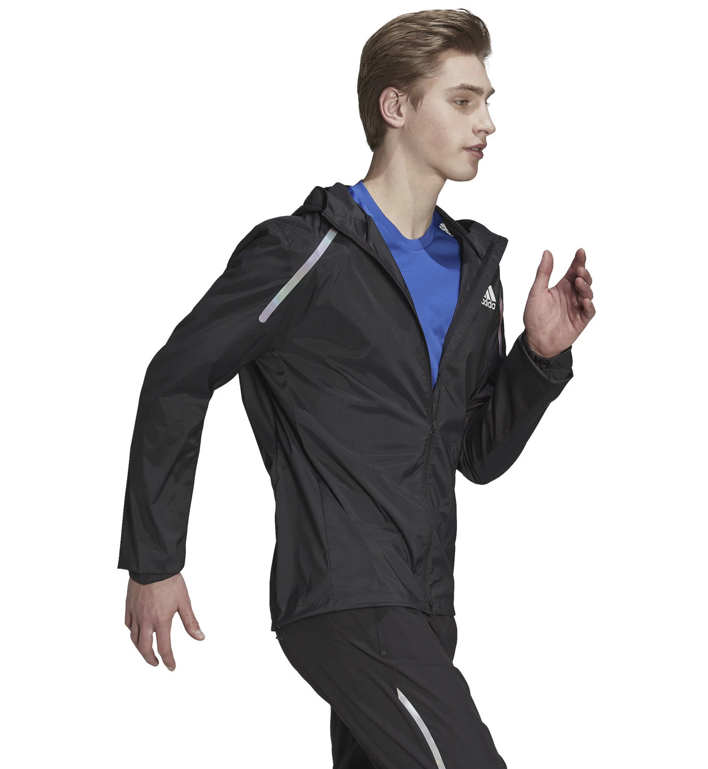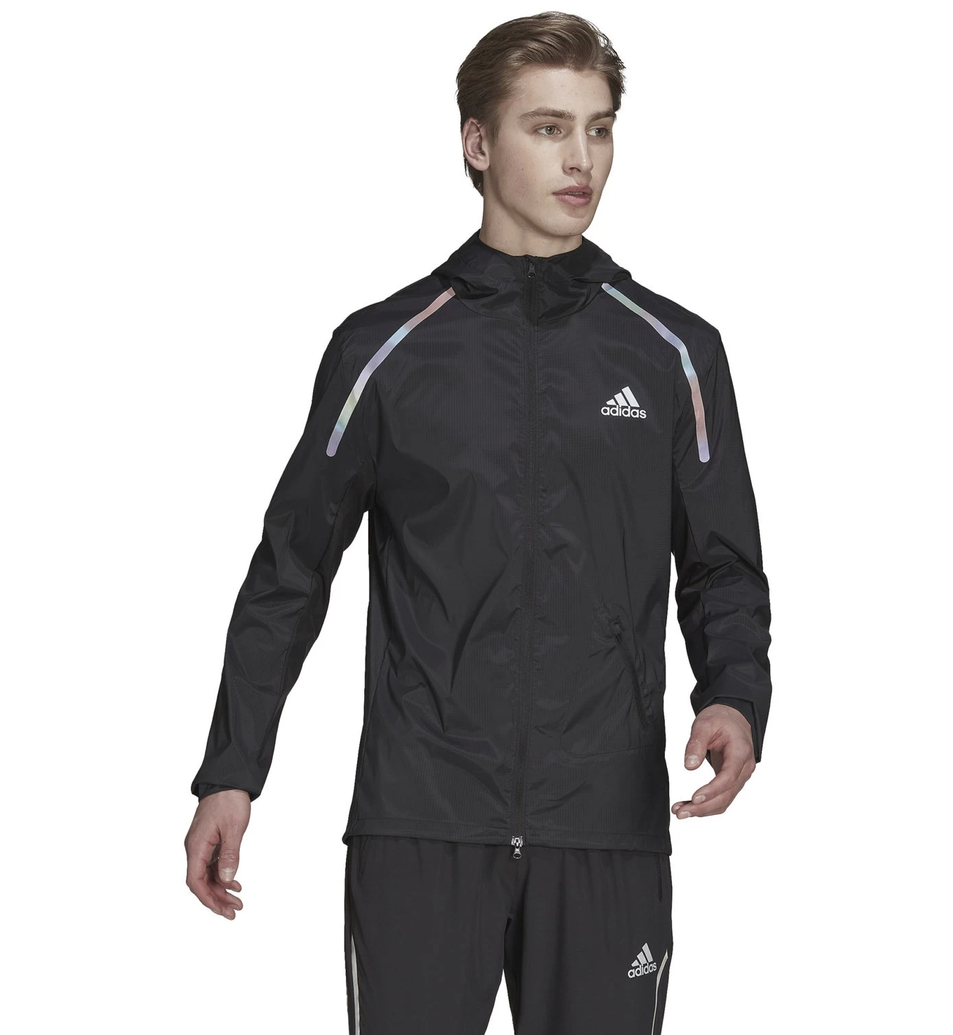 Die adidas Marathon Laufjacke hält Wind und Regen ab, damit du deinen Lauf genießen kannst, auch wenn dunkle Wolken aufziehen. Der durchgehende Reißverschluss und weitenregulierbare Details an Kapuze und Saum sorgen außerdem für ein Plus an Komfort.