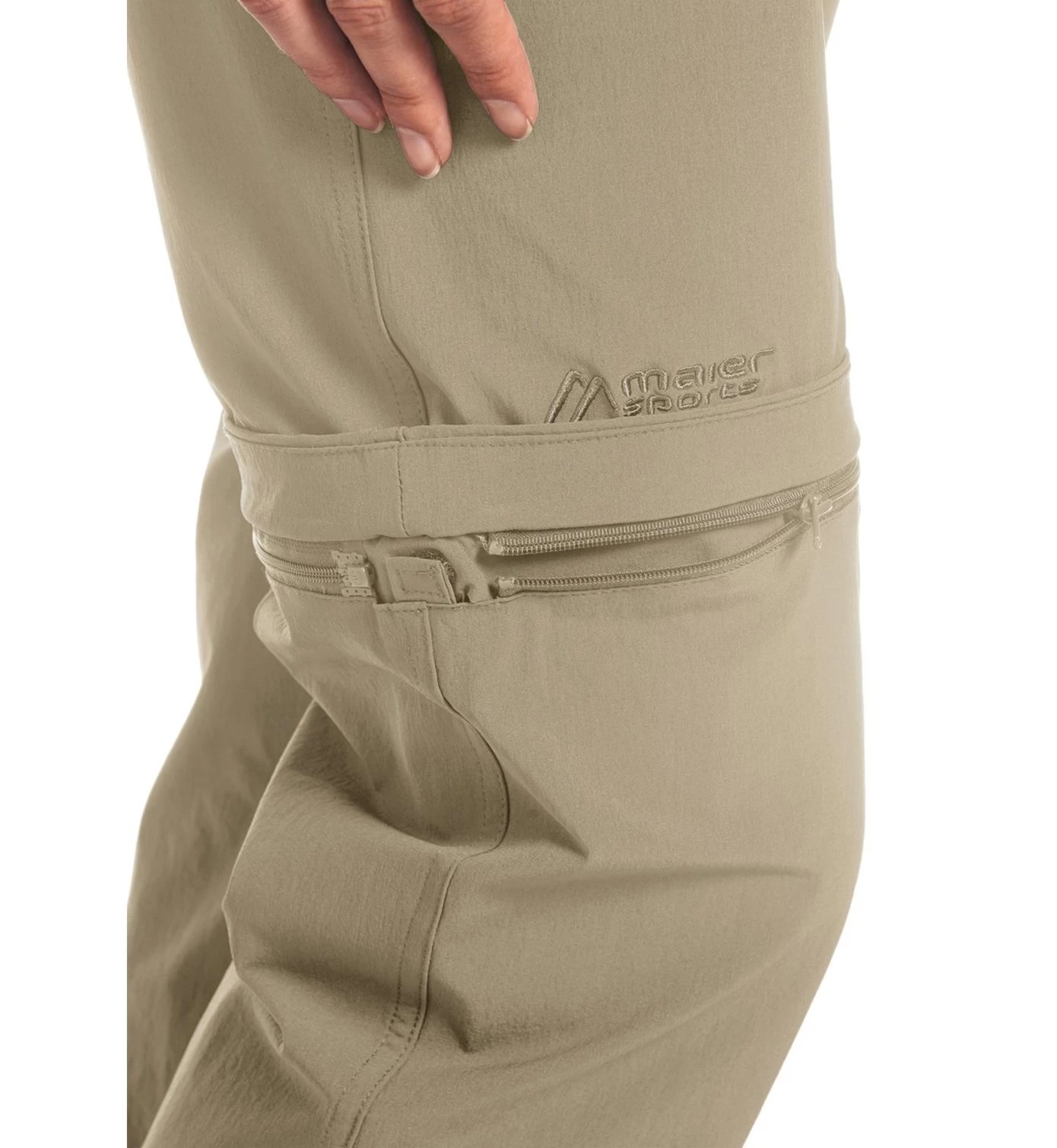 Zip-Off-Funktion. Das wasserabweisende, bi-elastische dryprotec-Material leitet